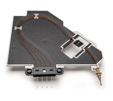 The capillary array is positioned behind the oven door and lies flat against the oven, ensuring consistent capillary temperatures during electrophoresis.